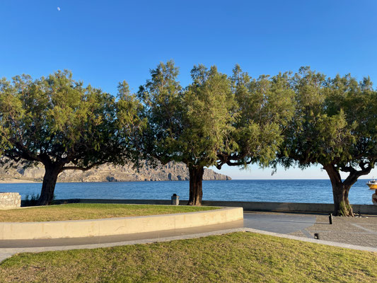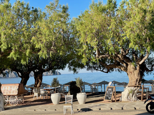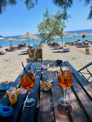 Wir haben uns natürlich auch in Plakias aufgehalten. Zum Ende des Urlaubs nahm der Wind ab, so dass wir uns dort auch am Wasser aufhalten konnten.